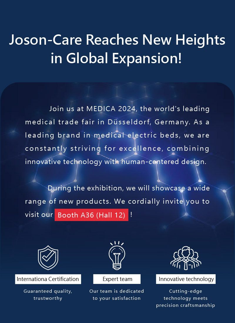 Join us at MEDICA 2024, the world's leading medical trade fair in Düsseldorf, Germany. As a leading brand in medical electric beds, we are constantly striving for excellence, combining innovative technology with human-centered design.
