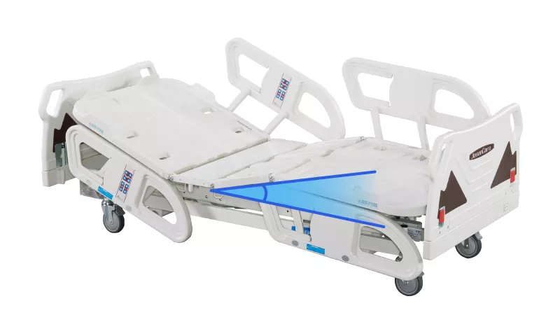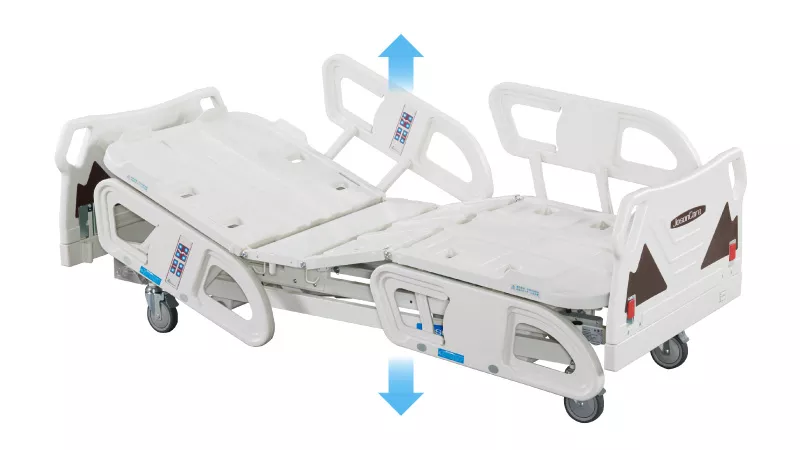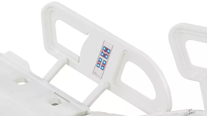 - Four-Piece Rotating Side Rails: Effectively prevents patient falls.