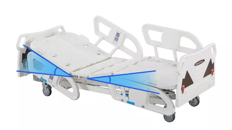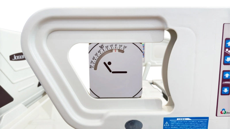 The two side rails are equipped with bed back and bed tilt angle indicators to make it easier for the operator to adjust the bed tilt angle.
