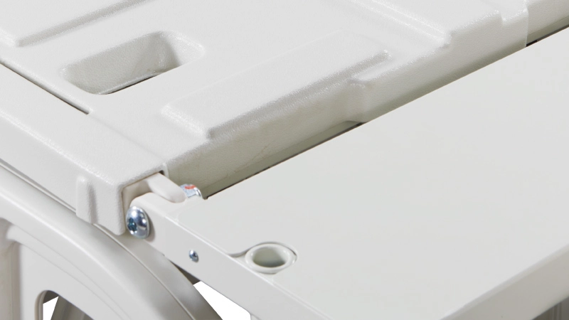 The Dust-Proof Lockable Caster prevents foreign objects from getting tangled during movement. Its integrated brake can be locked to secure the bed's position or unlocked for easy repositioning.