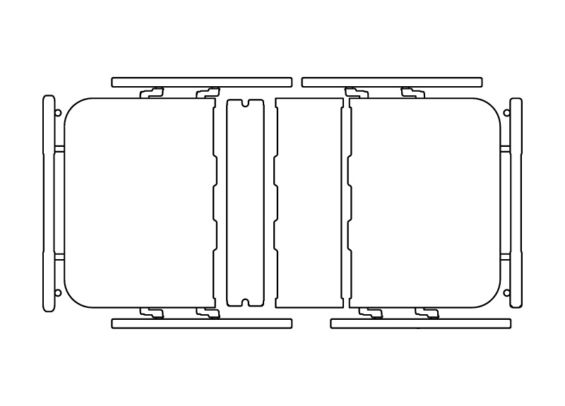 The material is one-piece molded plastic steel, with red safety switches on the left and right sides to provide quick disassembly and increase safety; the left and right sides are equipped with handles for easy grip and easy movement of the bed during disassembly.