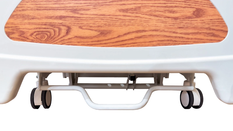 The bed base is equipped with restraint belt openings, allowing caregivers to securely fasten restraints when necessary to enhance patient safety.