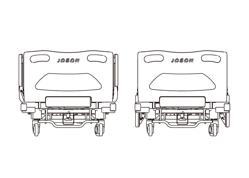 الطول الإجمالي للسرير 2220 ملم العرض الإجمالي للسرير 1000 ملم (القضبان الجانبية مرفوعة) ؛ 950 ملم (القضبان الجانبية منخفضة) الطول الإجمالي لقاعدة المرتبة 2020 ملم العرض الإجمالي لقاعدة المرتبة 900 ملم الارتفاع الإجمالي للسرير 455 ~ 755 ملم (5 بوصة) تفاوت ±20 ملم في جميع الأبعاد | ±30 ملم في عرض القضبان الجانبية | تفاوت +5° -0° في درجة الزاوية