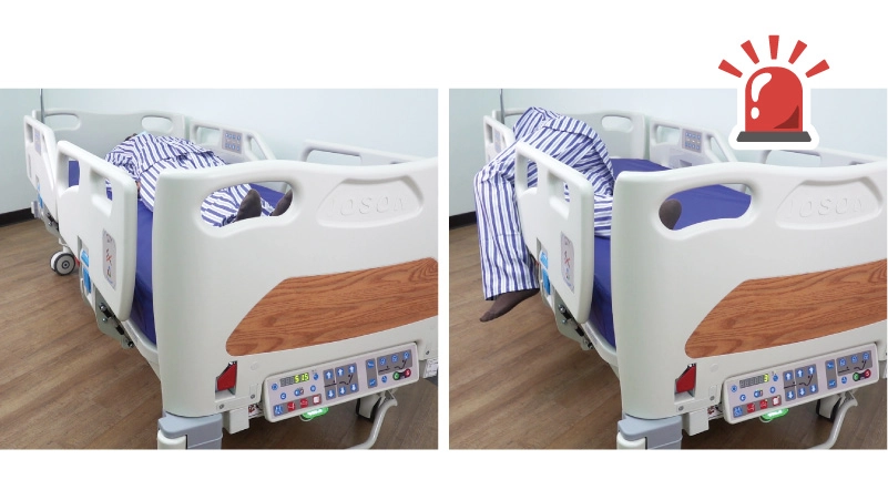 مستشعرات الوزن: مستشعرات موضوعة حول السرير للكشف عن محاولة المريض الخروج من السرير.
