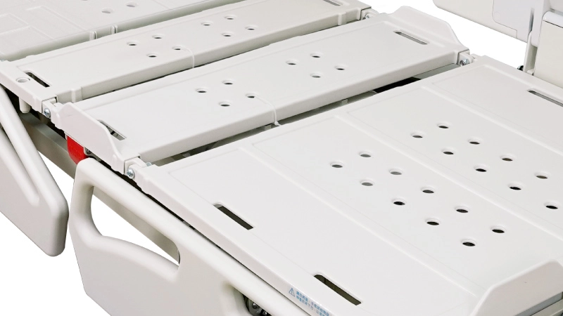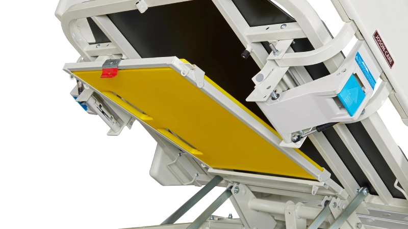 تم تجهيز قاعدة السرير بفتحات لحزام التقييد، مما يسمح لمقدمي الرعاية بتثبيت القيود بإحكام عند الضرورة لتعزيز سلامة المريض.