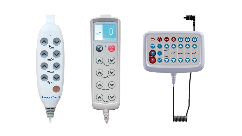 - التحكم في وضعية السرير: يوفر التحكم في الرفع، والظهر، والركبة، ووضعية ترندلينبورغ/العكسي، ووضعية الكرسي.