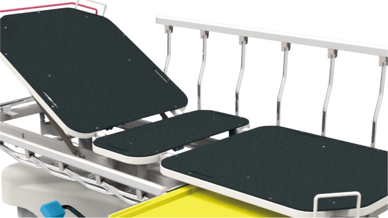 يوفر القضيب الجانبي القابل للطي حماية شاملة لسلامة المريض. مقبض تحرير القضيب الجانبي، لون يمكن تمييزه بسهولة مع تصميم ثابت للاستخدام الشاق.