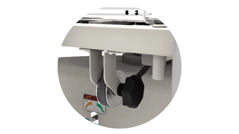 وحدة الفرملة والتوجيه المركزية، تم تركيب دواسات فرامل مركزية حول السرير لتسهيل عمليات الفرملة أو التوجيه من قبل الطاقم الطبي. عجلة مقفلة مقاومة للغبار، تمنع الأجسام الغريبة بفعالية من الدخول أثناء تحريك السرير لتحسين كفاءة وسلاسة الحركة.