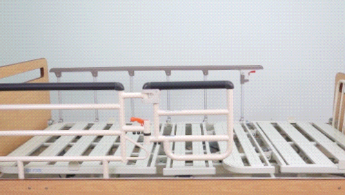يمكن وضع القضيب الجانبي القابل للطي بطول 3/4 لأعلى أو لأسفل حسب احتياجات مقدمي الرعاية.
