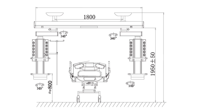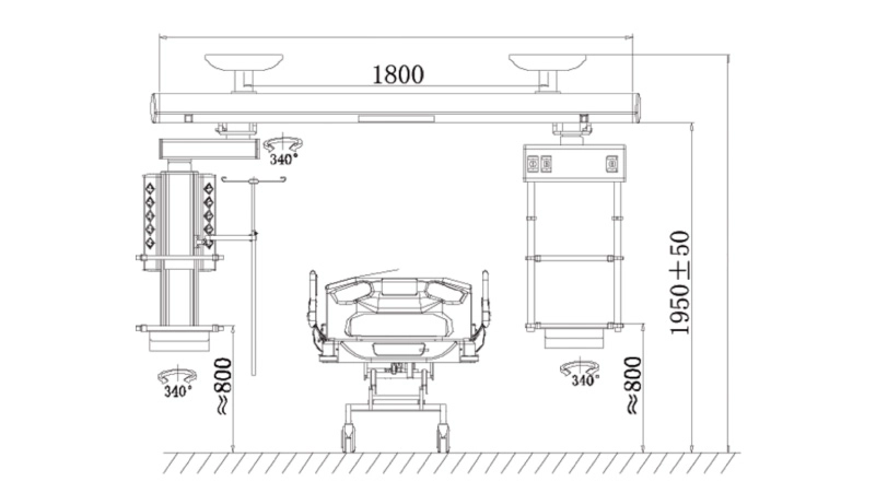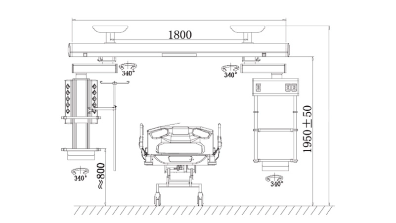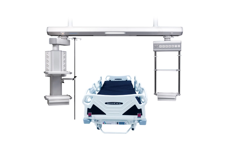 - 創造更大的搶救空間:ICU乾濕分離C型系列吊橋將氣和電從主樑上引到基座或功能箱吊架内,一側或兩側附有回轉臂,創造更大的搶救空間,主橋樑安裝離地面1950mm的高度,醫護人員的通過性更突出,設計更人性化,充分體現人體工學,外觀更加美觀。