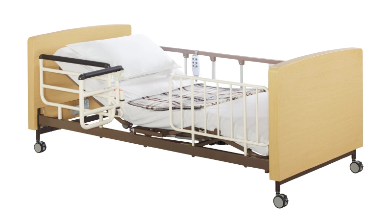 依照護需求架設於床體側邊,可選擇外開角度輔助患者站立以便離床或是與床身平行以保護患者躺臥在床上時避免滑落床下。