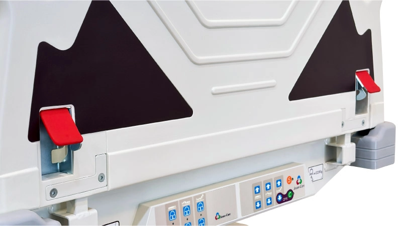 設置於床體兩側,讓床體床面快速放平,便於緊急狀況進行CPR急救。