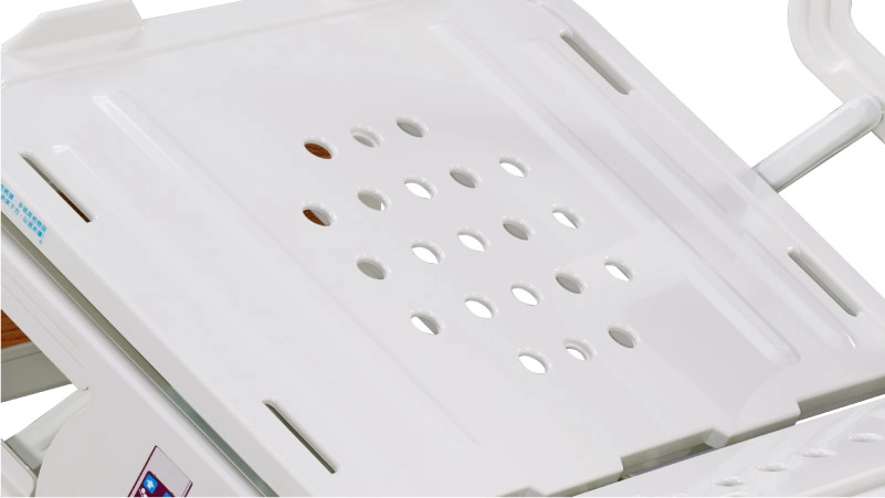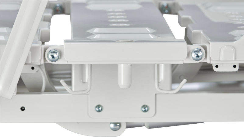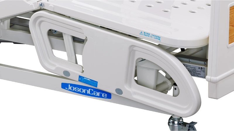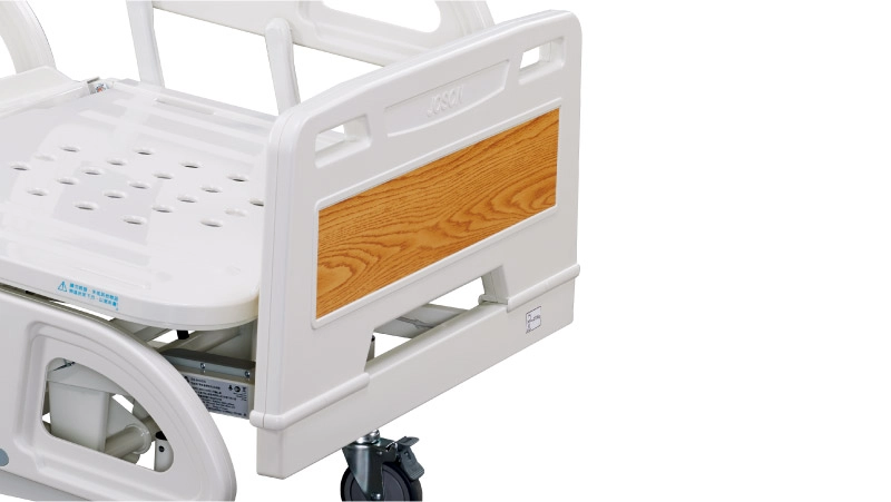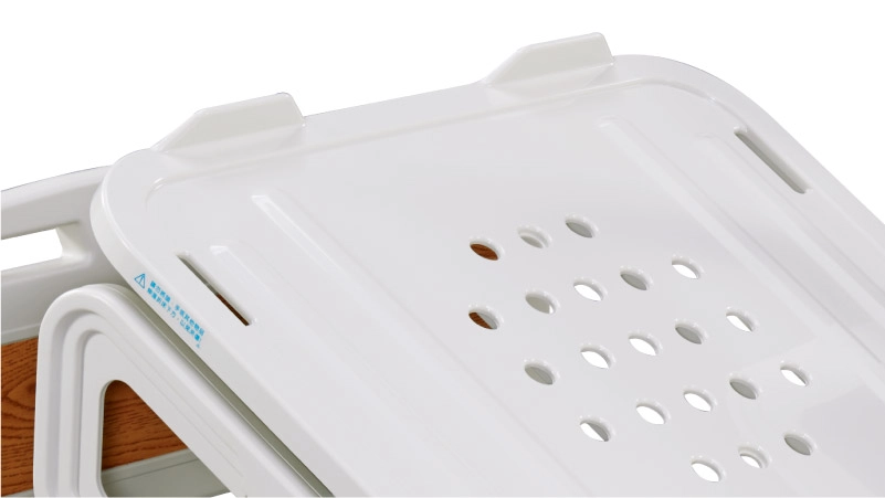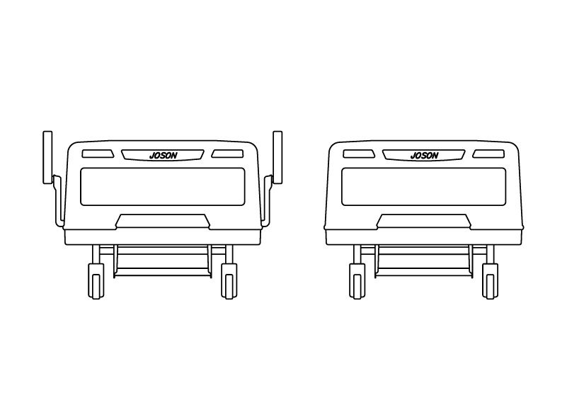 旋轉式護欄設計,兩側護欄提供防止跌落的防護,材質為塑鋼一體成型。可將護欄收合於床底,使輪椅更靠近床緣,讓照顧者與被照顧者便於床邊移動。