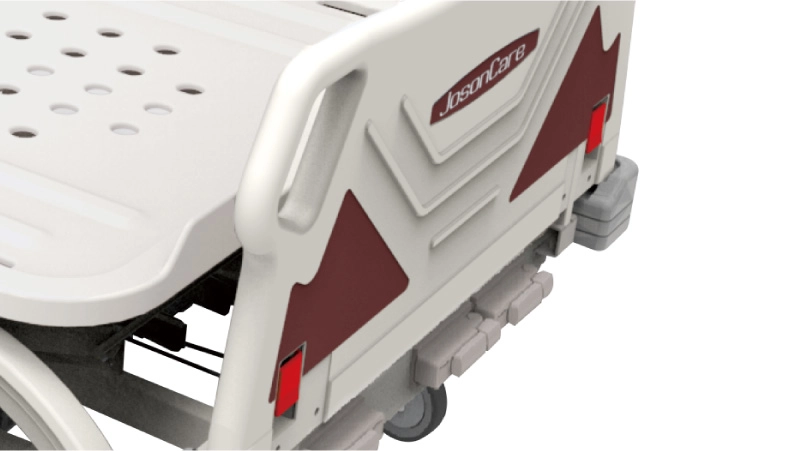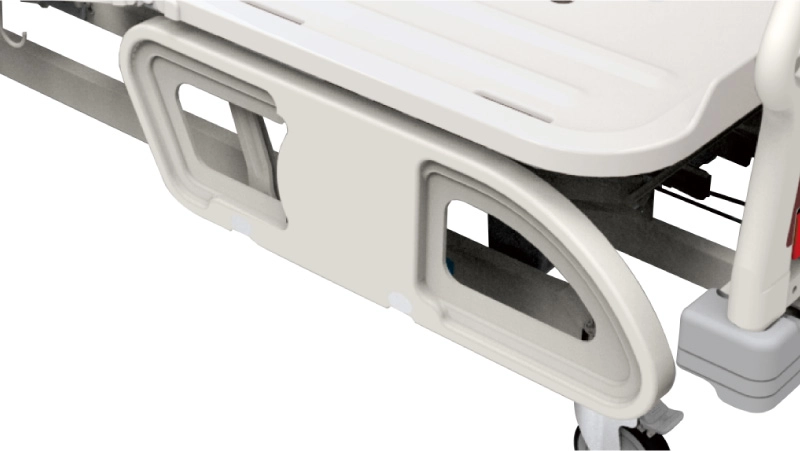 旋轉式護欄設計,兩側護欄提供防止跌落的防護,材質為塑鋼一體成型。可將護欄收合於床底,使輪椅更靠近床緣,讓照顧者與被照顧者便於床邊移動。