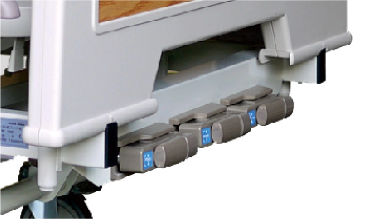 一般煞車輪,ON/OFF兩段式開關可固定或解除煞車,便於調整床體位置及避免固定時床體滑動。