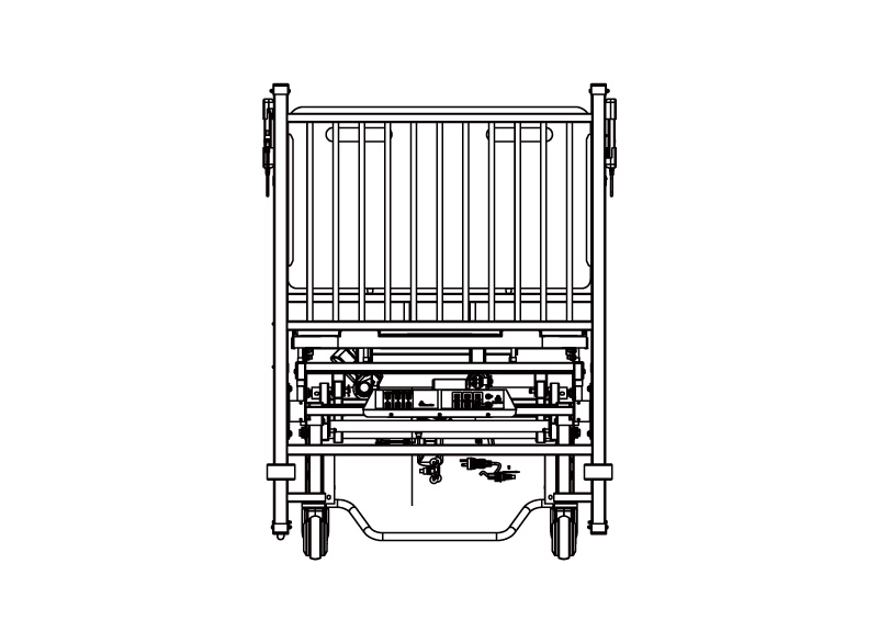 供醫護人員進行操控使用,包含床面高低、背膝部升降、護欄按鍵功能鎖定/解除、CPR快速釋放鍵。
