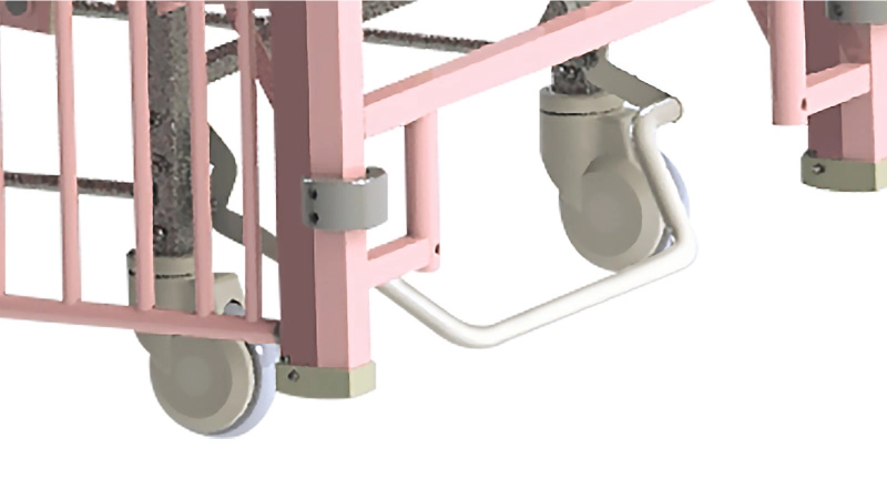 床尾中控煞車系統,直徑5吋防塵煞車輪,有效防止異物捲入;快速固定/解除全床煞車狀態,增加床體移動效率。
